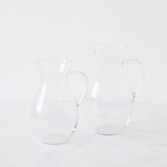 チェコのボヘミア地方では、9世紀よりガラス製造の歴史があり、工芸的な吹きガラス製法により作られています。丸みのある美しいフォルムが印象的なジャグ。ワインやお水、ジュースやミルクなど、ボトルから移し替えるだけで食卓を優雅に演出してくれます。フラワーベースとしても最適です。用途に合わせて使える1000mlと1500mlの2サイズの展開。