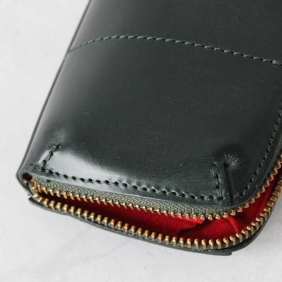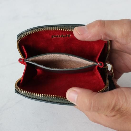 馬具製造用の英国ブライドルレザーを使用したパースは、堅牢で美しい光沢が特徴。使い込むほどに味わい深い表情を楽しめます。裏地には各カラー共通で赤いスエードレザーがあしらわれ、細部にまでこだわりが感じられる作り。また『POKIT』のアイコンでもある立体的なフォルムが空間を広く確保し、ミニマルながら収納力も抜群です。独創性の高いデザインと伝統に裏打ちされた実用性、その両方を兼ね備えたレザーパースです。