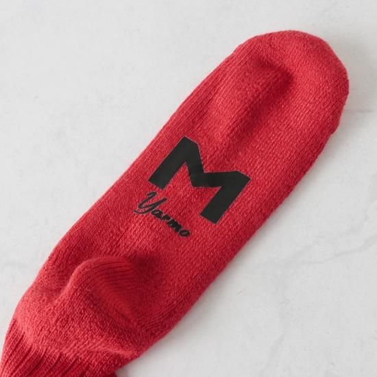 Yarmo定番のCUSHION SOLE WORK SOCKS。足裏部分にパイル地が施されクッション性、吸湿性に優れています。ウール × ナイロンの肉厚な生地は肌触りが良くあたたか。カラーバリエーションも豊富なのでちょっとしたギフトにもおすすめです。SとMの2サイズ展開。