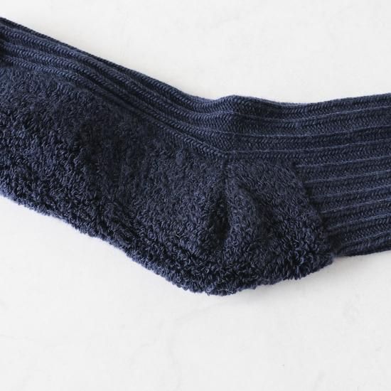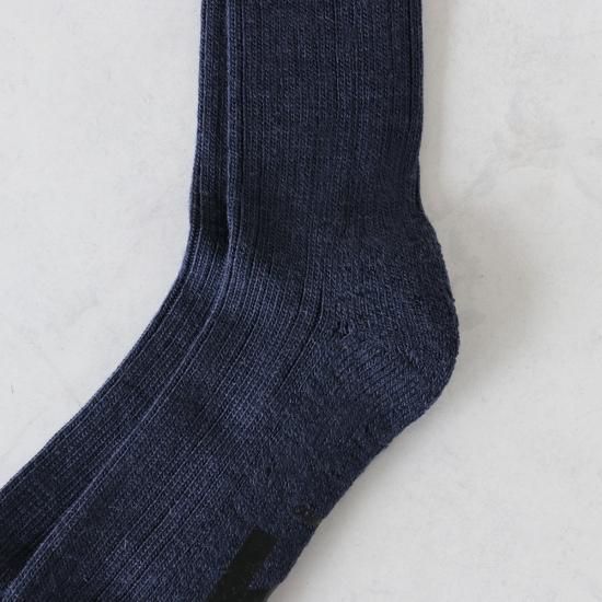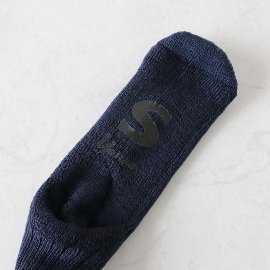 Yarmo定番のCUSHION SOLE WORK SOCKS。足裏部分にパイル地が施されクッション性、吸湿性に優れています。ウール × ナイロンの肉厚な生地は肌触りが良くあたたか。カラーバリエーションも豊富なのでちょっとしたギフトにもおすすめです。SとMの2サイズ展開。