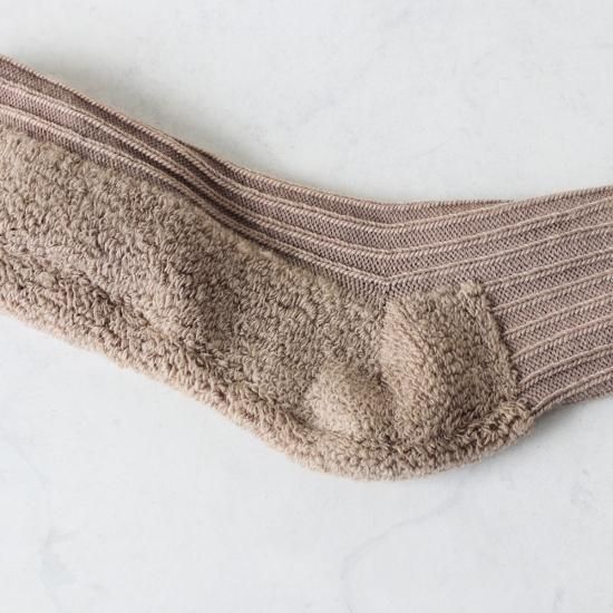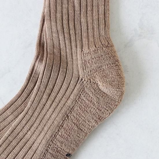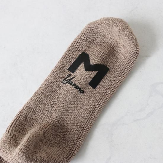 Yarmo定番のCUSHION SOLE WORK SOCKS。足裏部分にパイル地が施されクッション性、吸湿性に優れています。ウール × ナイロンの肉厚な生地は肌触りが良くあたたか。カラーバリエーションも豊富なのでちょっとしたギフトにもおすすめです。SとMの2サイズ展開。
