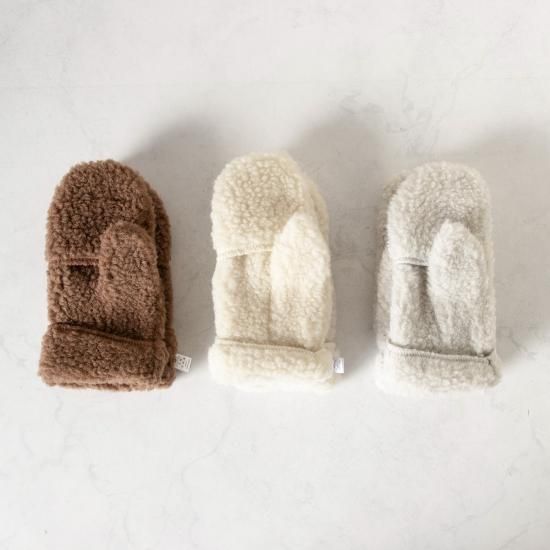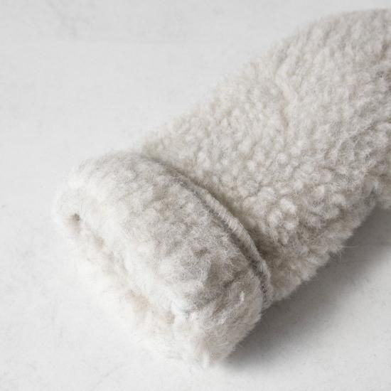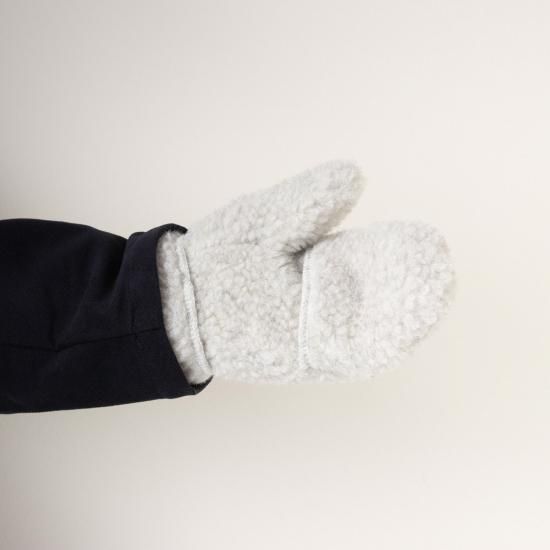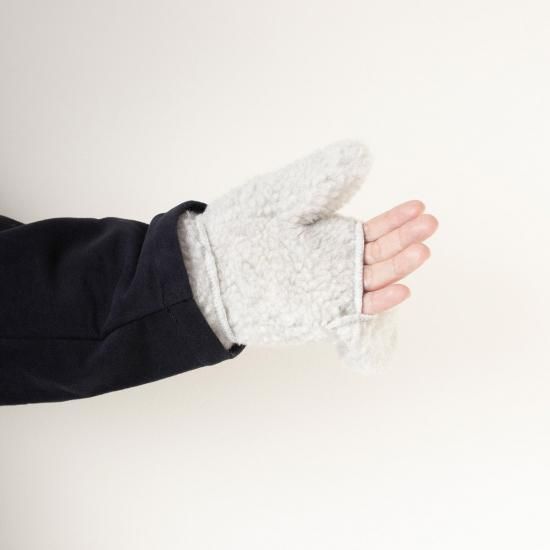ウール100%のフードミトン。指先から手首までをしっかりカバーしてくれるのでとても暖か。ミトンとフィンガーレスの2WAYタイプで、ちょっとした作業時も便利です。ボリューム感のあるふわふわとした見た目も可愛らしく、寒い冬には手放せないアイテム。ギフトにもおすすめです。