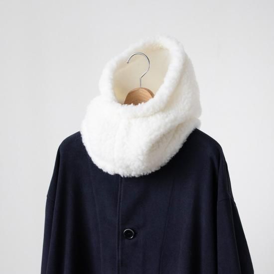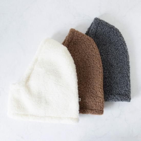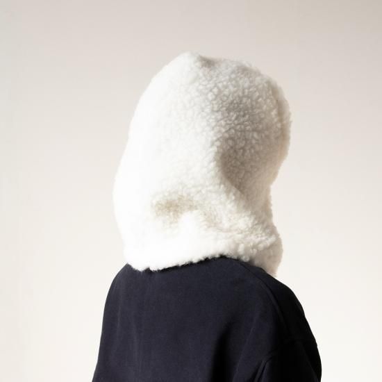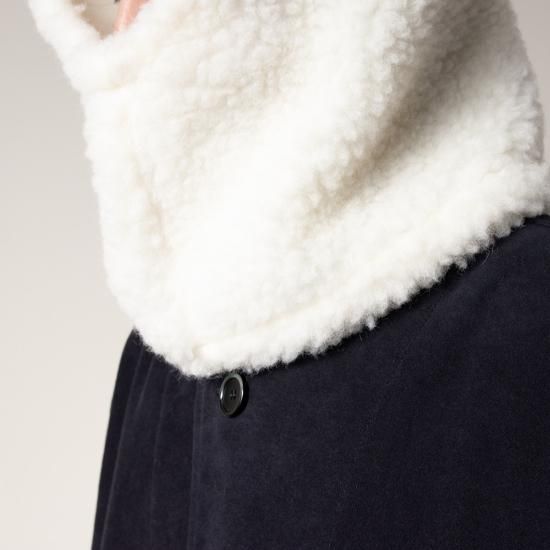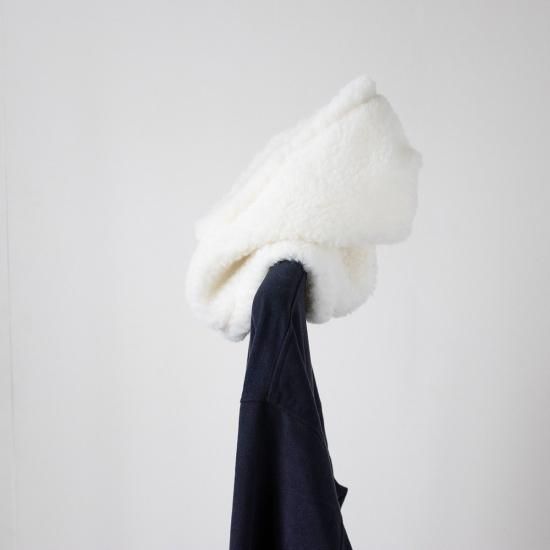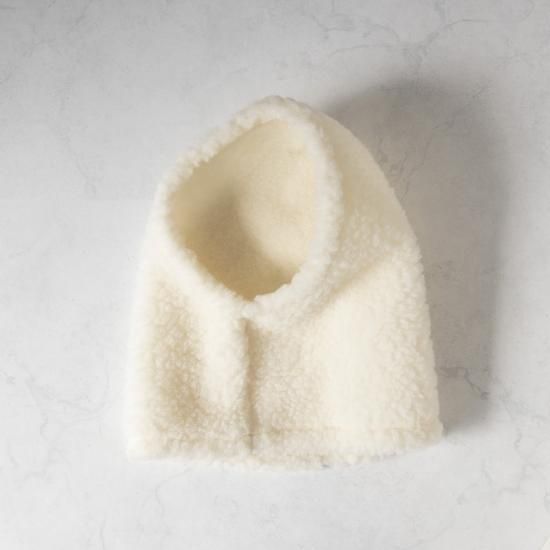 ウール100%のフードスヌード。首から顔周りまでをしっかり覆ってくれるのでとても暖か。アウターとのスタイリングやネックウォーマーとしてもおすすめです。ふわふわとした見た目も可愛らしく寒い冬には手放せないアイテム。