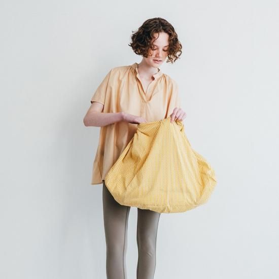 立体的なフォルムがポイントの「アズマ バッグ」。大きめサイズで収納力もたっぷり。持ち手の結び目を調整すればハンドバッグ、ショルダーバッグの2WAYに。薄手で軽やかなコットンなので、小さく畳んで持ち歩いてサブバッグにしたり、旅先にもおすすめです。