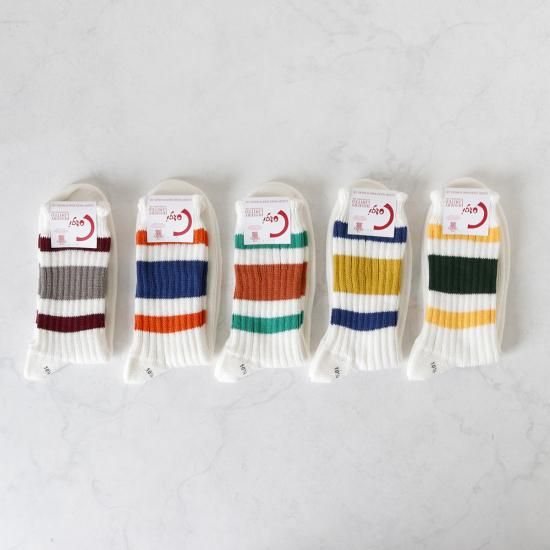 ふっくらと柔らかな肌触りのソフトコットンを使用したラインソックス。絶妙なカラーリング、スポーティな雰囲気のラインソックスはスタイリングのアクセントに。つま先は職人のハンドリンキングにより、ゴロつきのない快適な履き心地。長い歴史の中で培われた確かな技術、他では味わえない高い品質が魅力の一足です。