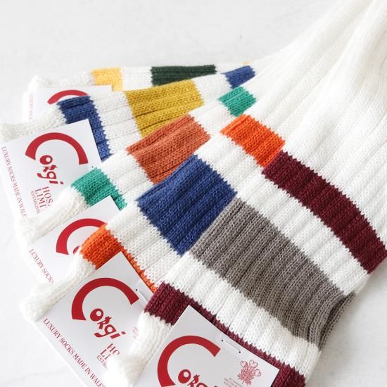 コーギ・ホージリー社は1893年に英国サウス・ウェールズで創業したニットメーカー。創業当時のウェールズ地方は炭鉱が主な産業であり、そこで働く労働者たちに暖かいロングソックスを穿かせたいという思いからハンドメイドの靴下の製造を開始。1988年にはプリンス・オブ・ウェールズ(チャールズ皇太子)が10年間に及びニットウェアとソックスを愛用した実績によりロイヤル・ワラント(王室御用達認定証)が認められました。ほとんどのメーカーが機械により大量生産する中、コーギ・ホージリー社は現在も職人による昔ながらの手作りにこだわっています。
