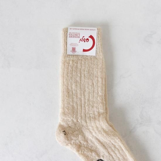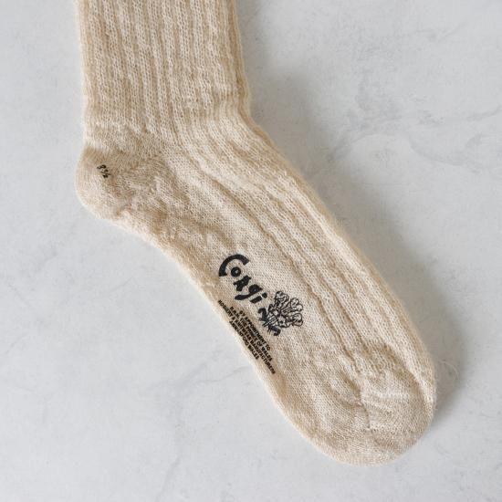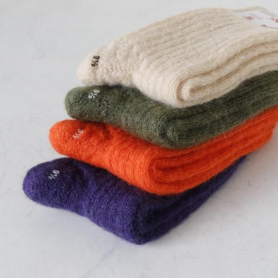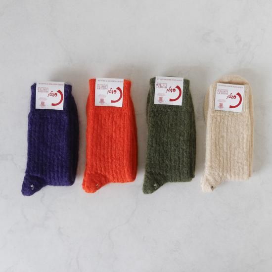 モヘアを使用したリブソックスは、ふっくらと軽く柔らかな肌触りが特徴。また、空気をたっぷりと含み保温性にも優れています。つま先は職人のハンドリンキングにより、ゴロつきのない快適な履き心地。長い歴史の中で培われた確かな技術、他では味わえない高い品質が魅力の一足です。