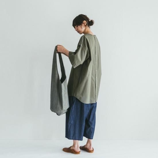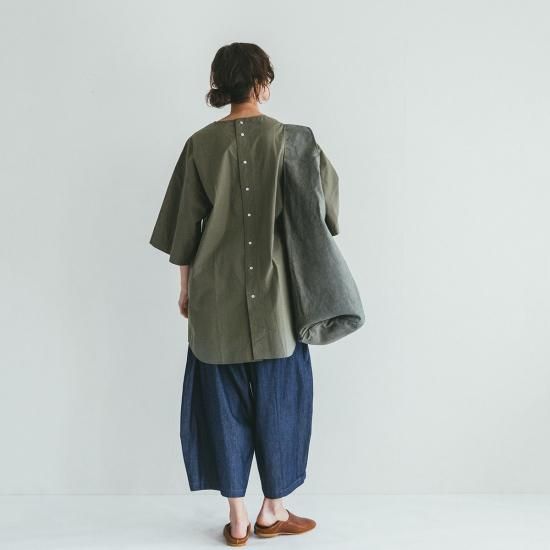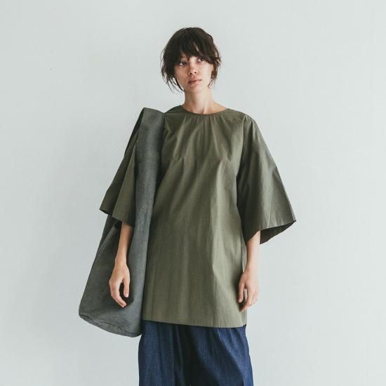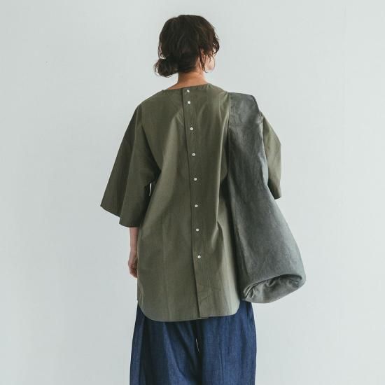 シンプルなハーフスリーブシャツ「スバス トップ」。たっぷりとした身幅とアームホールで、リラックス感漂うシルエットに仕上がっています。すっきりとしたラウンドネック、裾のカッティング、バックボタンデザインもポイントに。ハリがありながらもさらっと軽やかなコットン素材で、デイリーに愛用いただける一着です。