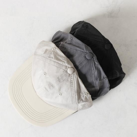 プレーンな6パネルの「TECH BB CAP」。非常に薄手のナイロンを採用し、軽やかなフィットに仕上がっています。後頭部には細かいパンチングが施され通気性も確保しています。サイズはアジャスターで調整可能。普段使いにはもちろん、旅行やスポーツ、アウトドアまで幅広いシーンで活躍してくれるBBキャップです。