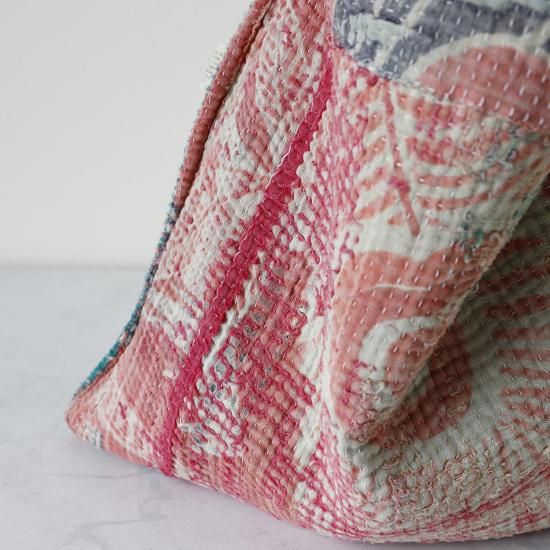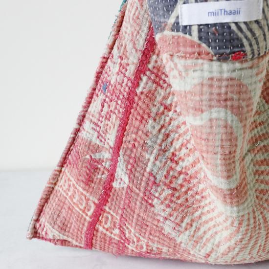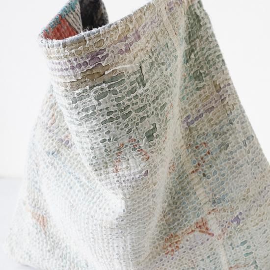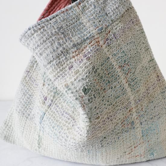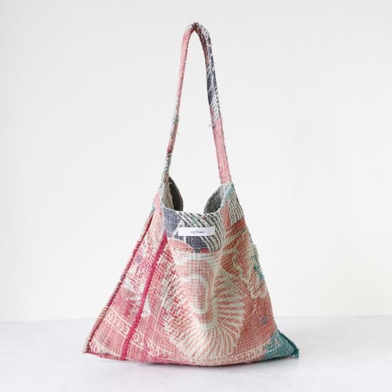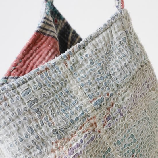 インドに古くから伝わる刺し子刺繍布 ”カンタキルト” を使って製作されたワンハンドルバッグ。今回は表と裏で異なる色柄を楽しめるリバーシブル仕様になって新登場。ワンショルダータイプのバッグは肩掛けやハンドバッグにと、スタイルに合わせて使い分けができます。ヴィンテージキルトならではの風合い、手仕事の温かみを存分味わえるワンハンドルバッグです。