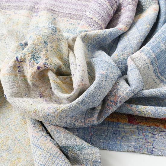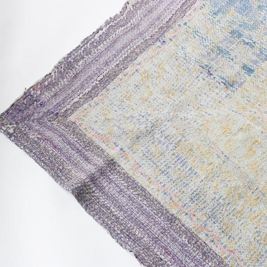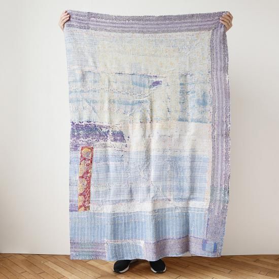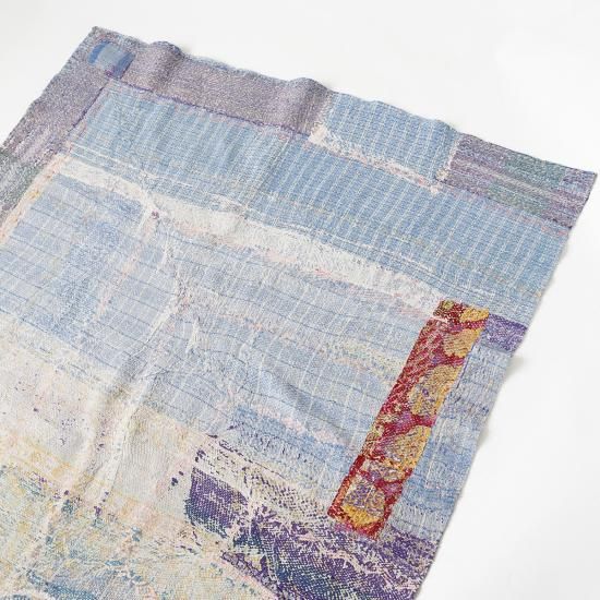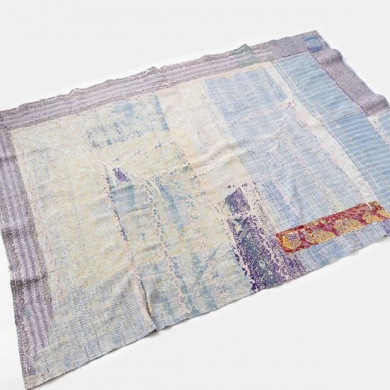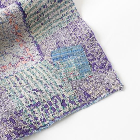 インドの東部 ベンガル地方を中心に古くから伝わる刺し子刺繍布『Kantha (カンタ)』。古布を複数枚重ね合わせ、女性たちの手によって一針一針時間を掛けて丁寧に仕上げられています。こちらは通常のカンタキルトをハーフサイズに仕立てたもの。コンパクトなサイズ感で扱いやすく、あらゆるシーンで重宝します。もちろん色柄はそれぞれ異なり、全て一点モノ。テーブルやベッドに掛けたり、ラグとしてフロアに敷いたりと、空間に彩りを添えるインテリアファブリックです。