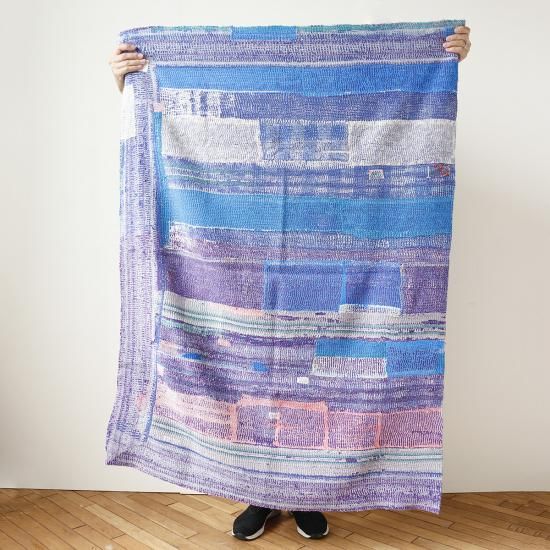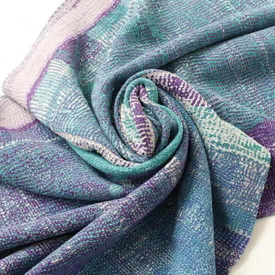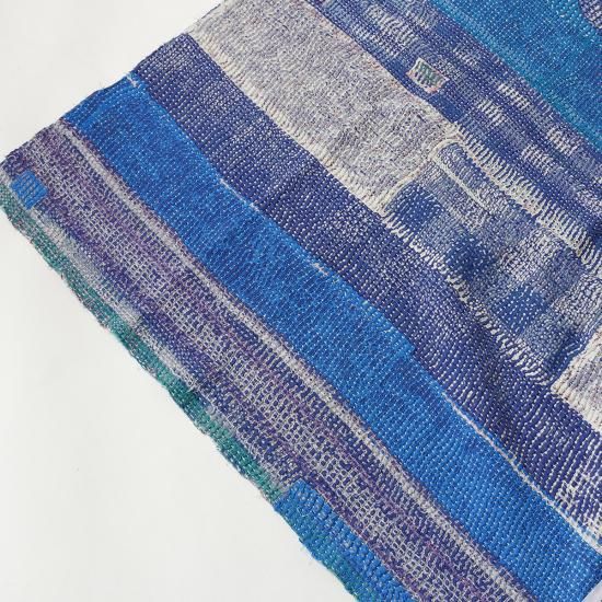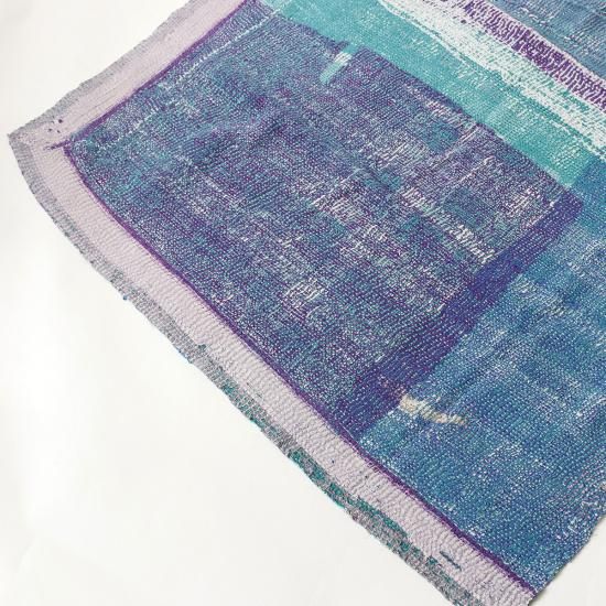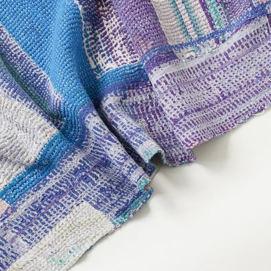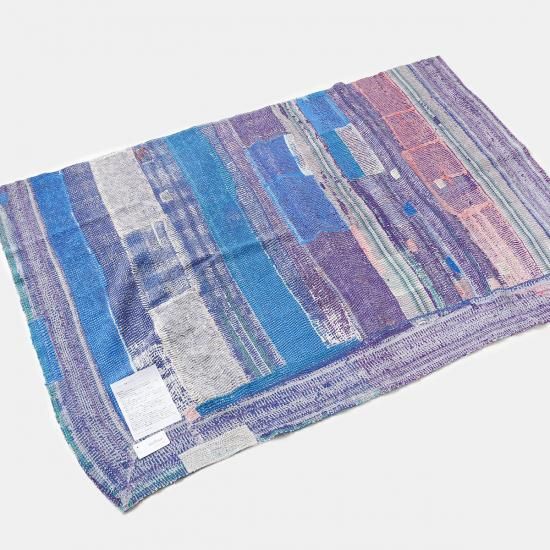 インドの東部 ベンガル地方を中心に古くから伝わる刺し子刺繍布『Kantha (カンタ)』。古布を複数枚重ね合わせ、女性たちの手によって一針一針時間を掛けて丁寧に仕上げられています。こちらは通常のカンタキルトをハーフサイズに仕立てたもの。コンパクトなサイズ感で扱いやすく、あらゆるシーンで重宝します。もちろん色柄はそれぞれ異なり、全て一点モノ。テーブルやベッドに掛けたり、ラグとしてフロアに敷いたりと、空間に彩りを添えるインテリアファブリックです。