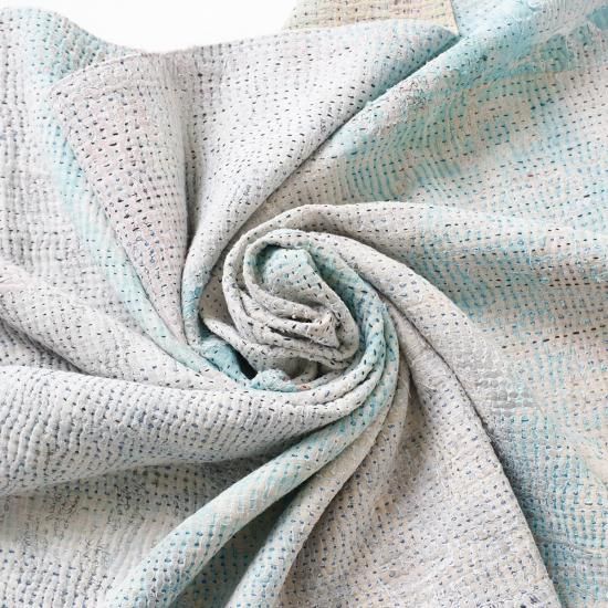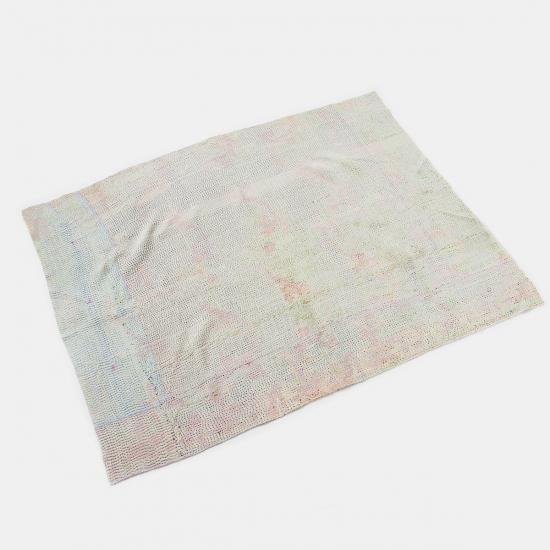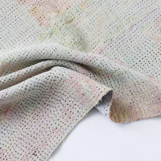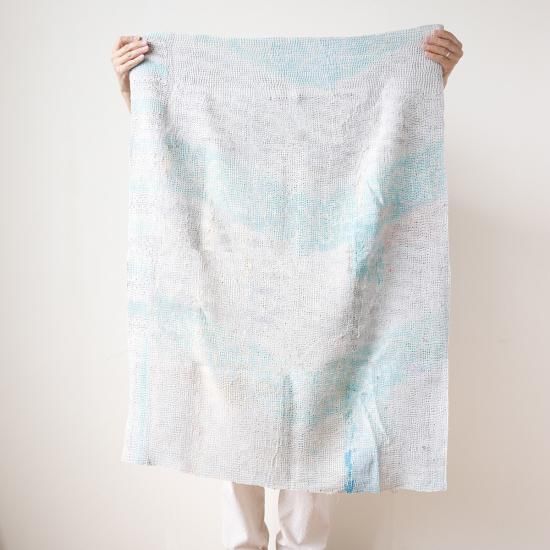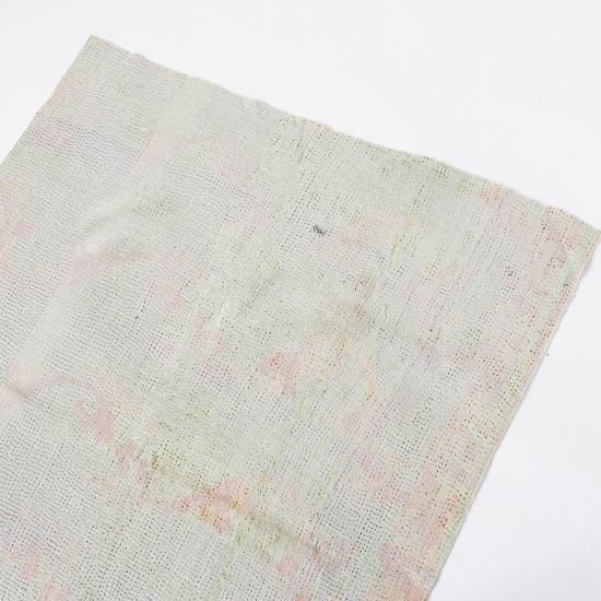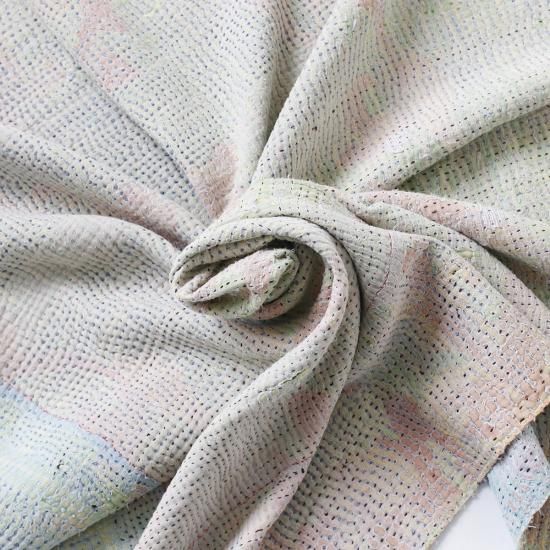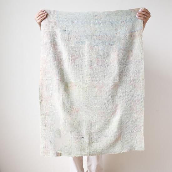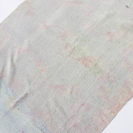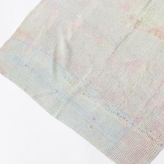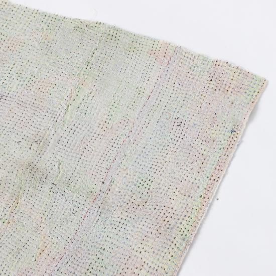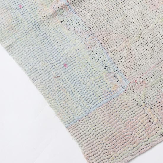 インドの東部 ベンガル地方を中心に古くから伝わる刺し子刺繍布『Kantha (カンタ)』。古布を複数枚重ね合わせ、女性たちの手によって一針一針時間を掛けて丁寧に仕上げられています。こちらは通常のカンタキルトをハーフサイズに仕立てたもの。コンパクトなサイズ感で扱いやすく、あらゆるシーンで重宝します。もちろん色柄はそれぞれ異なり、全て一点モノ。テーブルやベッドに掛けたり、ラグとしてフロアに敷いたりと、空間に彩りを添えるインテリアファブリックです。