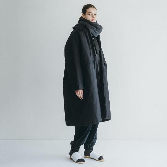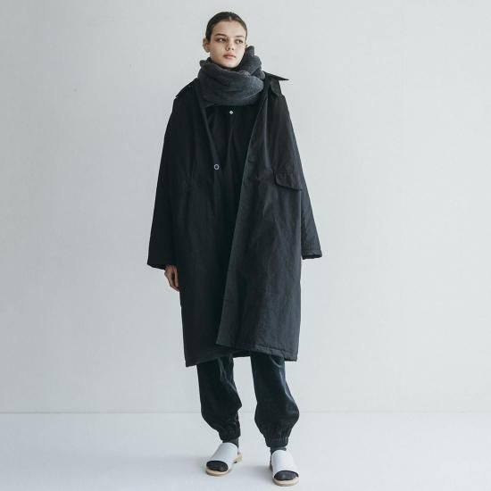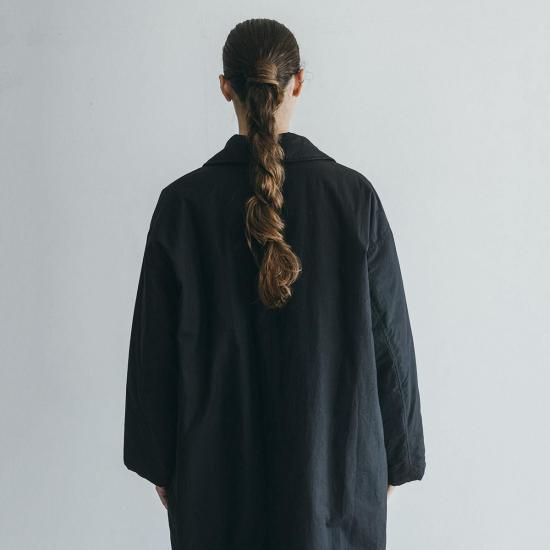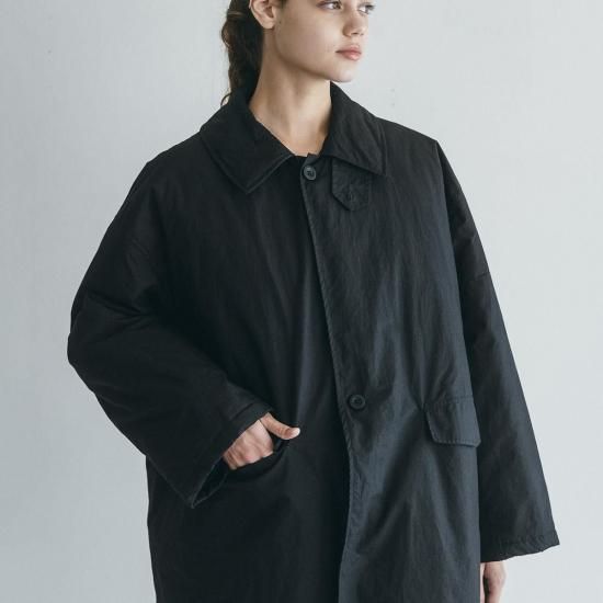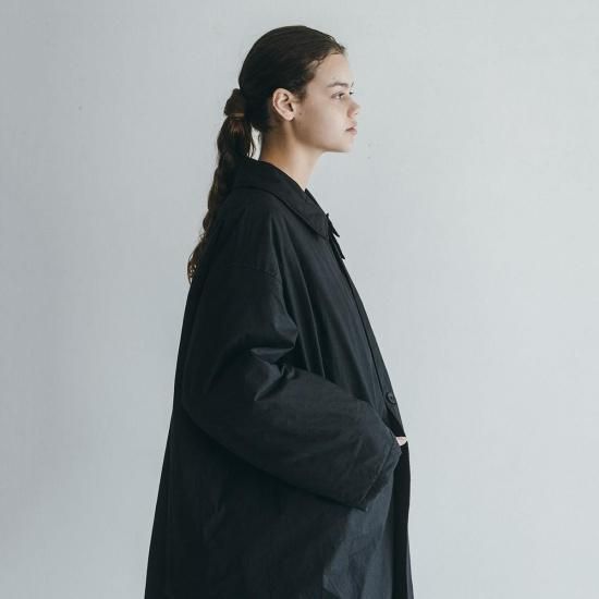 程よいボリューム感が目を惹く「アマル コート」。中綿入りで軽い着心地、保温性にも優れています。シンプルなデザインでありながら、襟元のチンストラップ、ミニマルなフロントボタン、フラップ付きのポケットなど、さりげないディテールもポイントに。ゆとりのあるサイジングでレイヤードもしやすく、ラフに羽織るだけでスタイルが決まる一着です。