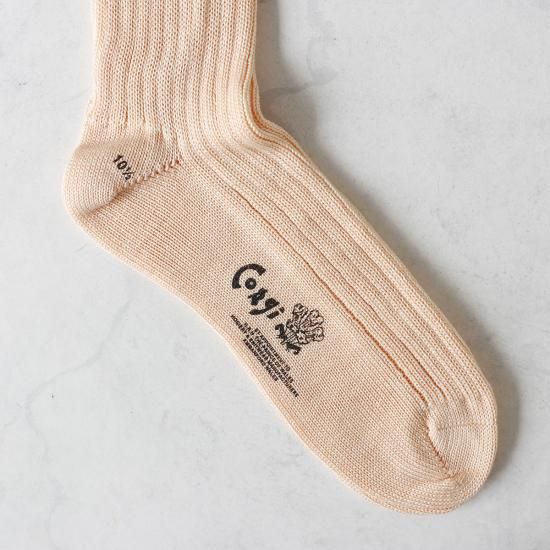 1893年に英国サウス・ウェールズで創業したニットメーカー『Corgi』。マーセライズコットンを使用したリブソックスは、シルクのような光沢とさらっとした肌触りが特徴。また、つま先は職人のハンドリンキングにより、ゴロつきのない快適な履き心地です。美しく上品な色合いもポイント。長い歴史の中で培われた確かな技術、他では味わえない高い品質が魅力の一足です。
