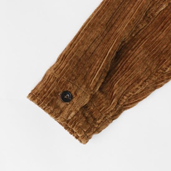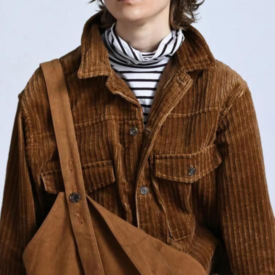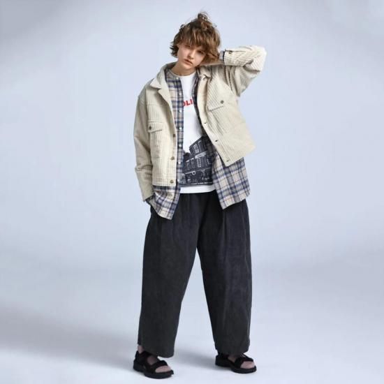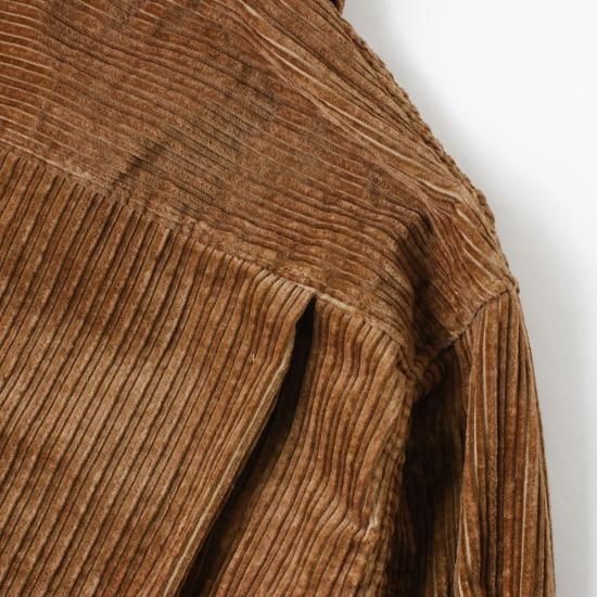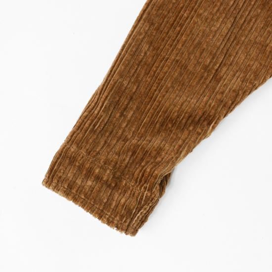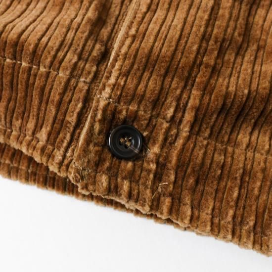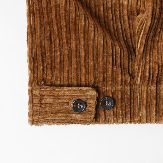 トラッカータイプのショートジャケット「CORDUROY WORK JACKET」。太畝と細畝が交互に並んだコーデュロイ生地 (通称:親子コール) を採用し、温かみと奥行きのある独特な表情を味わえます。フロントの大きめなポケットもポイントに。シャツやニットの上から羽織ったり、オーバーオールやジャンプスーツとのスタイリングもおすすめの一着です。