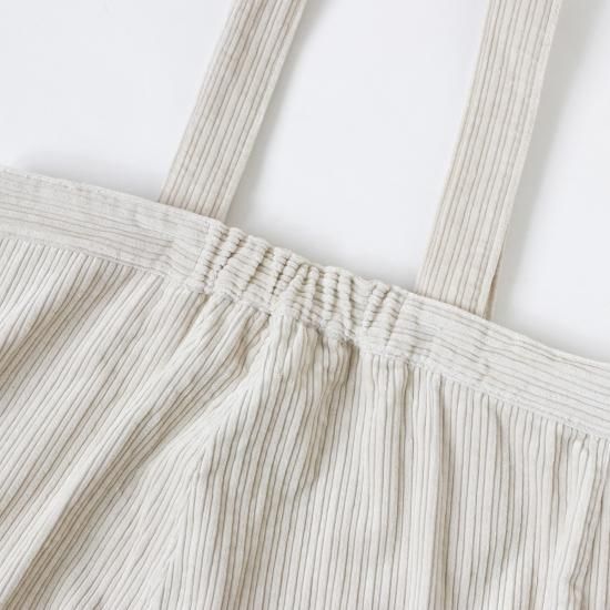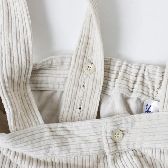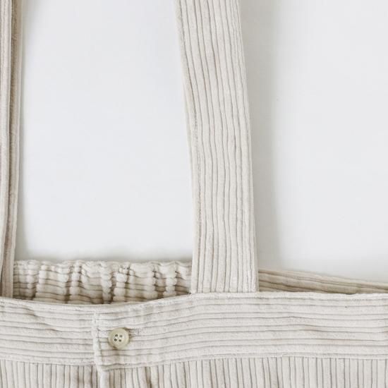 フィッシャーマンパンツから着想を得た「HIGH RISE BRACE TROUSERS」。太畝と細畝が交互に並んだコーデュロイ生地 (通称:親子コール) を採用し、温かみと奥行きのある独特な表情を味わえます。ゆったりとしたサイジングでありながらも背面のゴムで適度なフィット感も確保。ショルダーストラップで3段階の調整も可能です。シャツやニットを合わせたり、ジャケットやコートとのレイヤードもおすすめの一着。