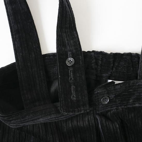 フィッシャーマンパンツから着想を得た「HIGH RISE BRACE TROUSERS」。太畝と細畝が交互に並んだコーデュロイ生地 (通称:親子コール) を採用し、温かみと奥行きのある独特な表情を味わえます。ゆったりとしたサイジングでありながらも背面のゴムで適度なフィット感も確保。ショルダーストラップで3段階の調整も可能です。シャツやニットを合わせたり、ジャケットやコートとのレイヤードもおすすめの一着。