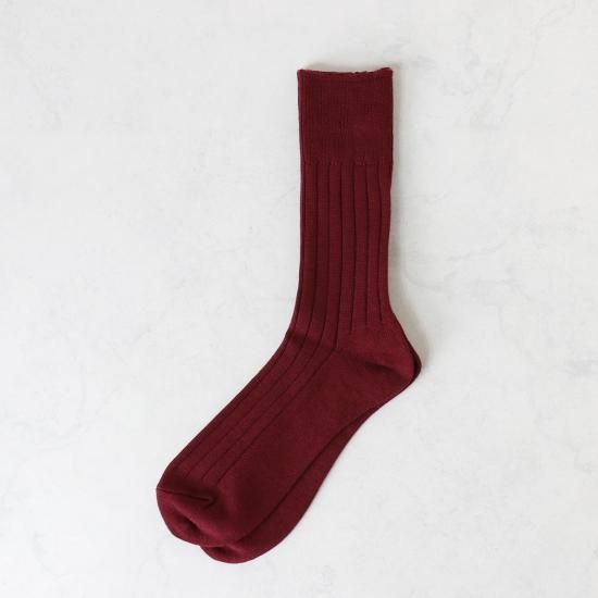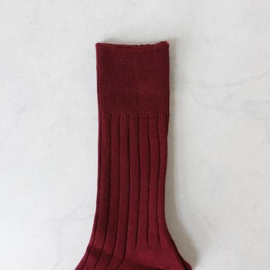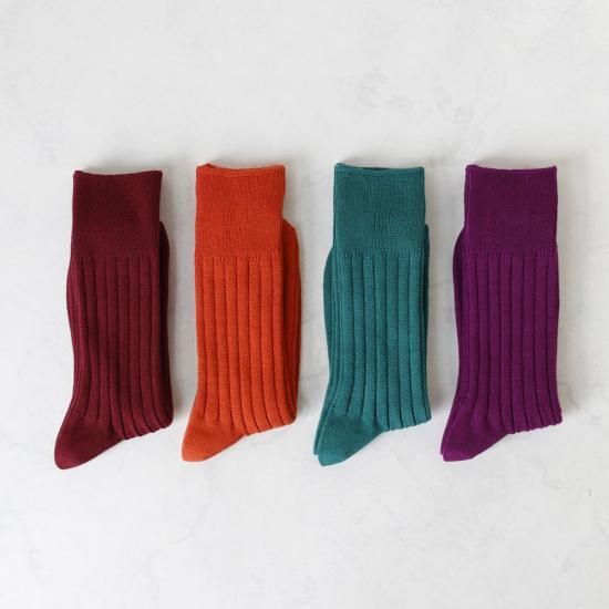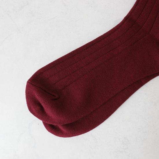 カシミヤとコットンの混紡糸で編み立てた「Cashmere Cotton Ribbed Socks」。滑らかでソフトな肌触りのカシミヤと耐久性の高いコットンでバランス良く仕上げています。厚すぎず薄すぎない程よい肉感、シンプルなリブ編みもポイント。豊富なカラーバリエーションも魅力の一足です。