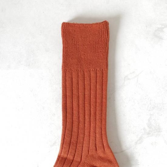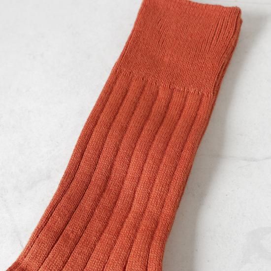 カシミヤとコットンの混紡糸で編み立てた「Cashmere Cotton Ribbed Socks」。滑らかでソフトな肌触りのカシミヤと耐久性の高いコットンでバランス良く仕上げています。厚すぎず薄すぎない程よい肉感、シンプルなリブ編みもポイント。豊富なカラーバリエーションも魅力の一足です。