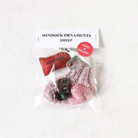 ミニソックス、プレッツェル、ミニピローの3つがセットになった、ホリデーシーズン限定「WOOLY MINI SOCK & FOOD ORNAMENTS」。ミニソックスは様々な毛糸を組み合わせて編み上げた一点もの。プレッツェルは樹脂粘土を一つ一つペイントし仕上げに防水塗料を施しています。ミニピローはイギリスの定番菓子Bourbon Biscuit をイメージ。ツリーやリースの飾り付け、ホリデーギフトにもおすすめです。